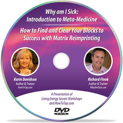 Richard Flook, international trainer for Meta-Medicine and the author of "Why Am I Sick?", presents a fascinating introduction to Meta-Medicine and the disease process. Karin Davidson, international Matrix Reimprinting trainer, EFT trainer, and co-author of the EFT level Comprehensive Resource coursebooks, reveals a simple path to locating your blocks to success and then using Matrix Reimprinting to clear them.